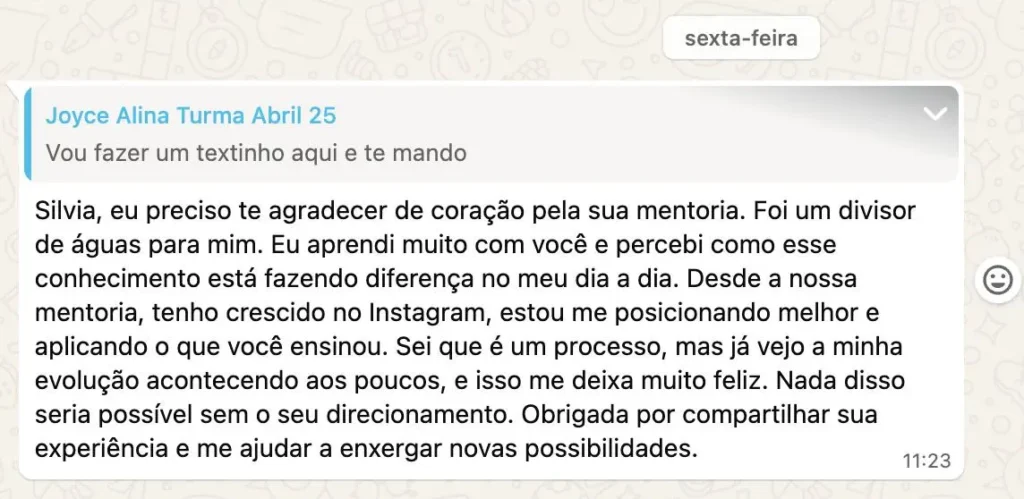 Você terá suporte direto nos encontros e no grupo exclusivo de WhatsApp.
